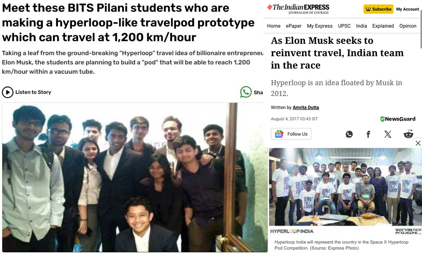 As it turns out, Pixxel is only narrowly the coolest thing that Awais and Kshitij worked on at BITS. Before starting up, they were both part of the historic Hyperloop India team, made up of Indian college students that banded together to answer a global engineering challenge posed by none other than Elon Musk.