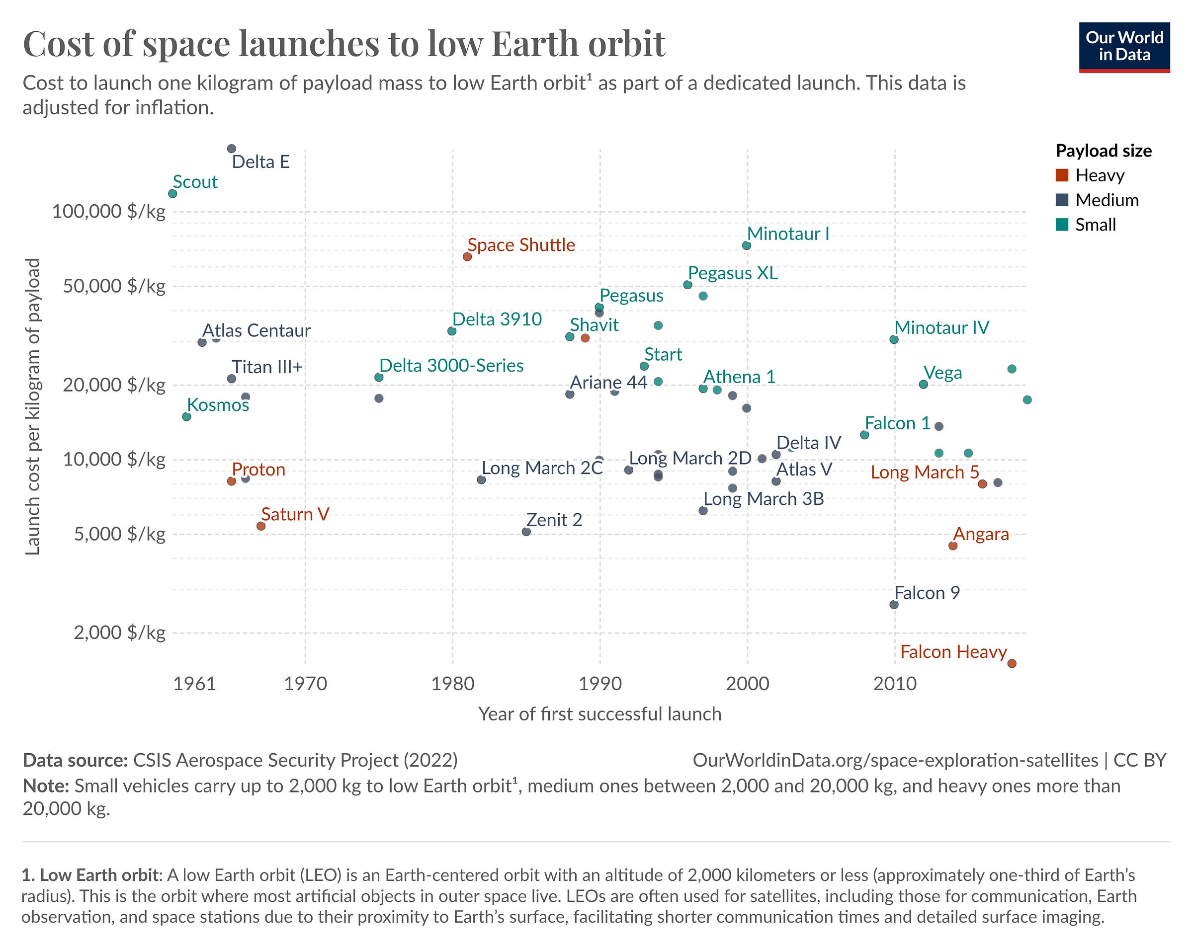 There’s been a 95%+ reduction in the per kg cost of sending something to space from the Space Race era in the 60s to present day