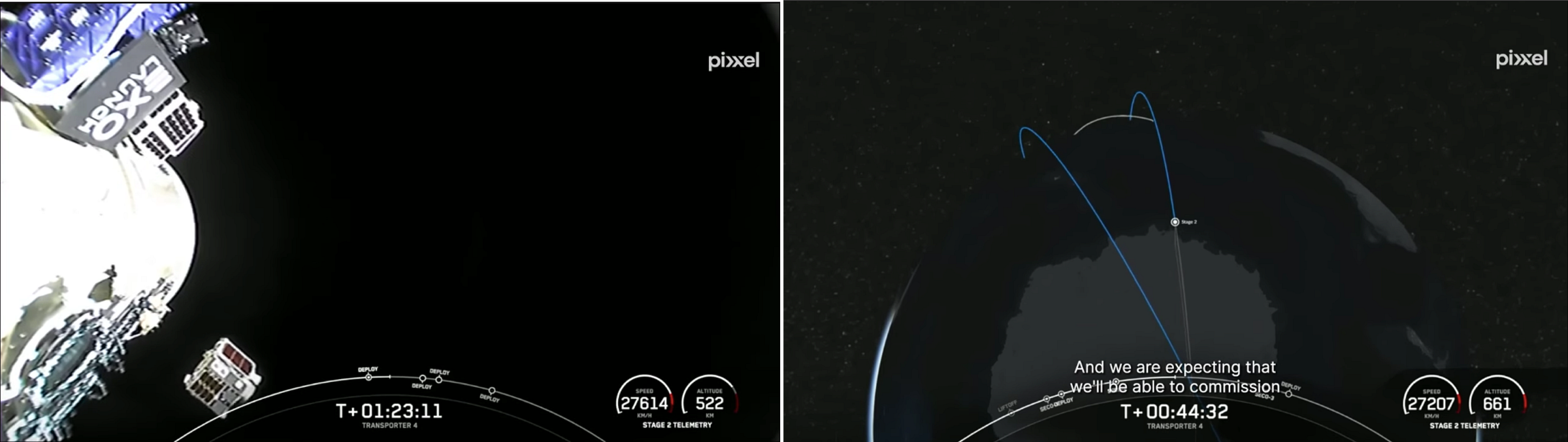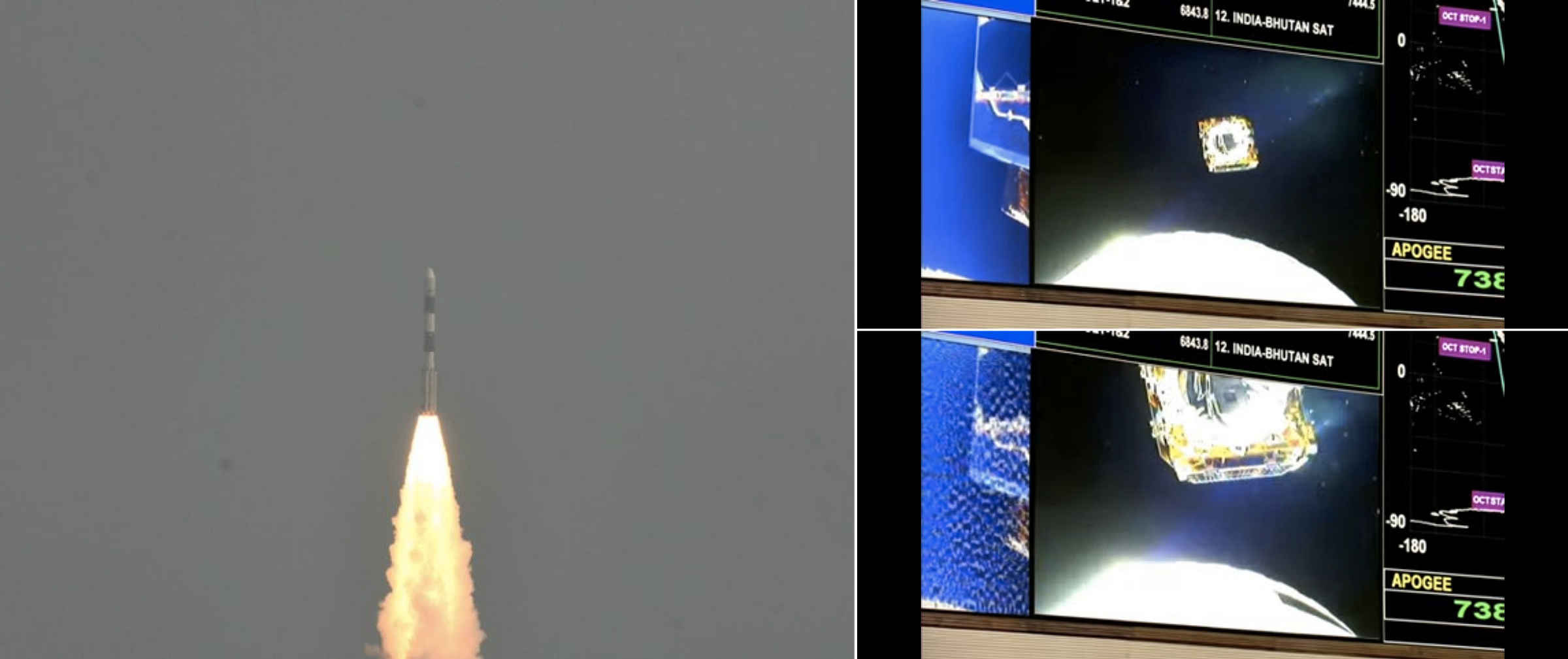 Left: Shakuntala being deployed into orbit; Right: Shakuntala dutifully embarking on its orbit