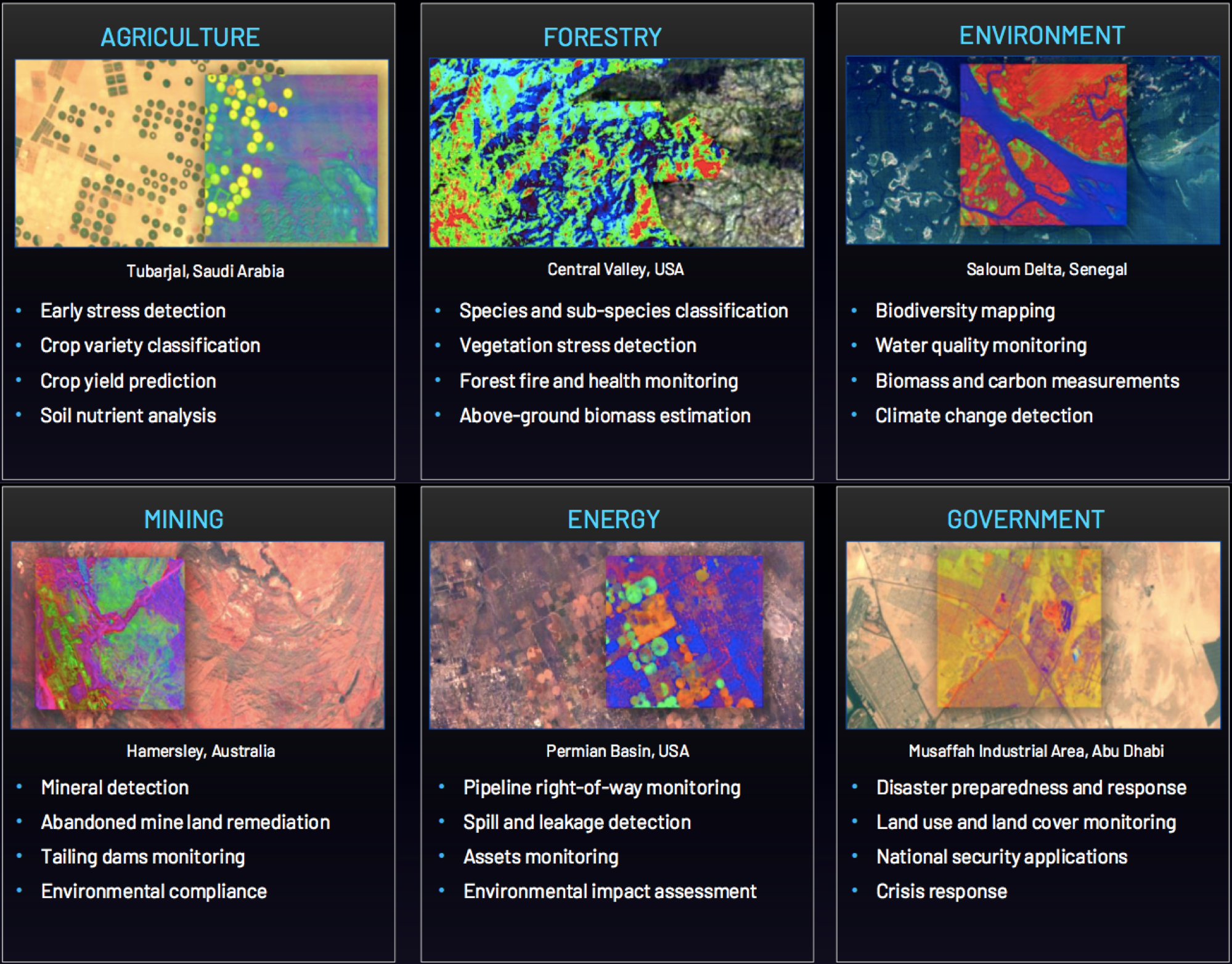 “We focused on nurturing a community of early adopters,” he says. “This was made up of two groups – 1. The hyperspectral ‘superfans’, which included scientists, researchers, hobbyists, the kinds of people that had been deeply studying hyperspectral imagery; and 2. Companies with in-house remote sensing teams. These tended to be large companies that extensively employed satellite data in their operations that had the most pressing commercial need for high-resolution hyperspectral data. It included companies like Rio Tinto, DataFarming, Procalculo, Geoimage etc.”