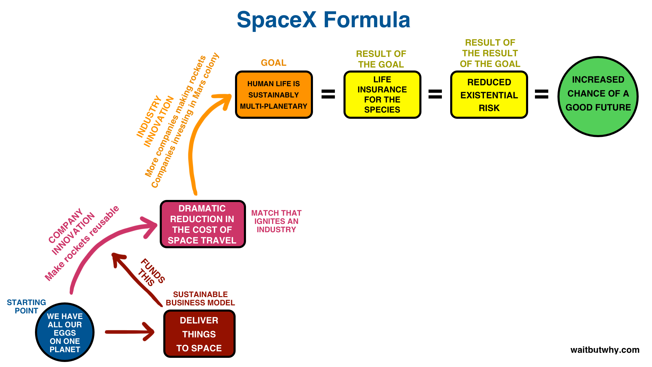 Tim Urban from WaitButWhy illustrated this ‘formula’ in a blogpost from 2017 that still holds true.