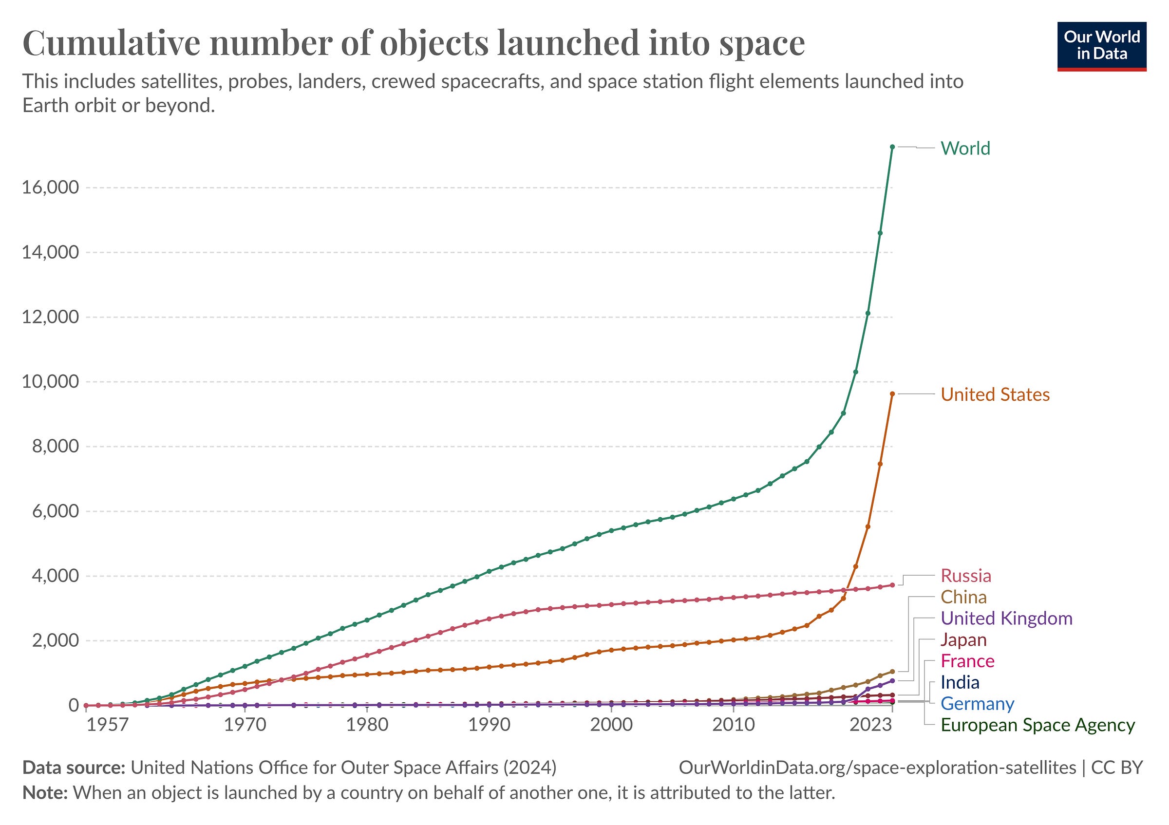By using a ‘first principles’ approach to budgeting and an iterative approach to production (i.e. blow stuff up as an experiment and make improvements the next time around, because stuff is cheaper to build in the first place), and then tagging on the magical unlock of rocket reusability, the company fundamentally altered the economics of space. They are now the de facto gold standard (and in some ways the only game in town) when it comes to rocket launches – becoming the preferred partner for NASA tasks like sending cargo and astronauts to the International Space Station, arranging satellite launches for governments and companies, and even for booking private space travel. This year alone, SpaceX – a private company – will account for 90% of all mass carried into orbit. As a cherry on top, they also make up >60% of all satellites in space (via the company’s satellite broadband venture called Starlink).